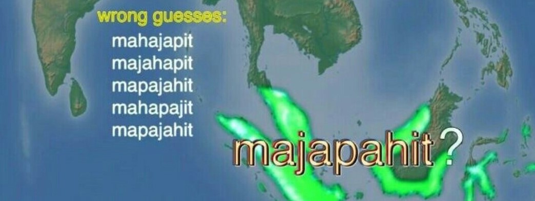“Oh! Look who controls all the islands. It’s the Mahajapit! [X] Majahapit! [X] Mapajahit! [X] Mahapajit! [X] Mapajahit! [X] Maja-pahit? [✓] – Bill Wurtz in “history of the entire world, i guess”