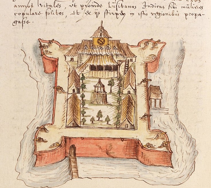 By the time that VOC fleet arrived, the Portuguese had been in Ambon for nearly a century. They first arrived in Ambon in 1512 and, after decades of alternating between peace and conflict with some of the peoples in the region, settled on the southern shore of Ambon Bay. (If you like to read more on this, check out my previous blog post.) In the 1570s, they constructed a fort and, by the end of the century, had built four churches and a small hospital. Outside the fort’s walls, recent Ambonese converts to Christianity established their own communities. Some Portuguese, known as casados (literally “married ones”), even started families with these neighbors. Their children were known as mestiços. There also existed communities of enslaved people from other parts of Asia and freed slaves, known as Mardicas (Mardijkers in Dutch). The Jesuits, who were the primary order of Catholic priests in the settlement, had their own residence on the edge of town, where they also operated a school.